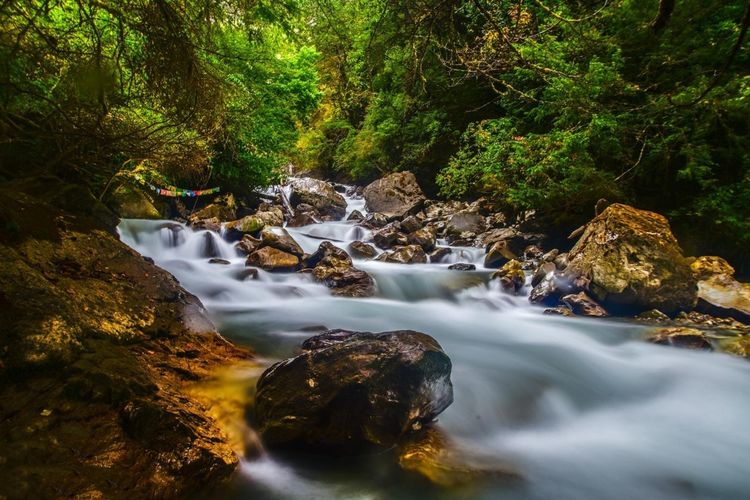 而下村通往雨崩神瀑,沿途可以看到古篆天书、五树同根的奇景。