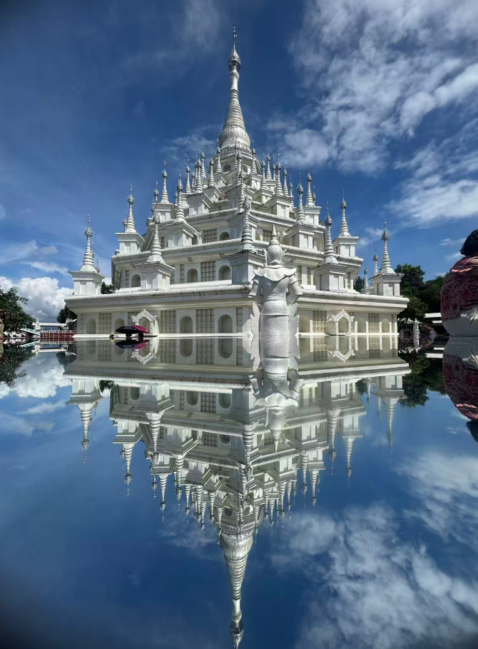 大银塔则与金塔遥相对望,银塔如披月华,通体洁白的塔身泛出柔和银光,与深蓝天幕中的星子互为映照。这里是南传小乘佛教文化交流中心,是中缅友谊的桥梁;傍晚漫步在傣族古镇里进行一次傣族古镇City work,当地活地图带你感受古镇韵味;
