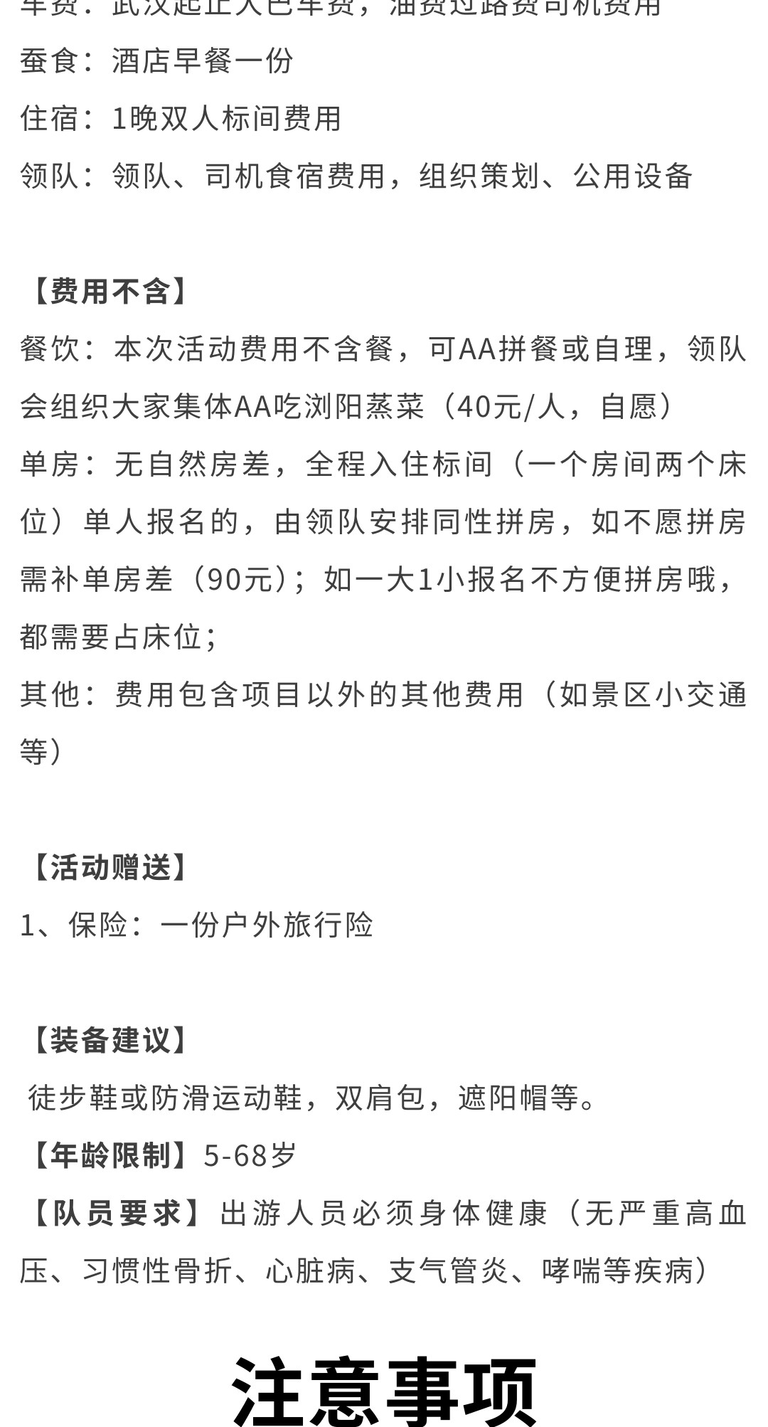 3、遇小雨本次活动照常进行,因为天气情况或者不可抗拒因素,领队有权利取消行程或进行适当的调整(如活动取消领队会提前电话通知并退还全额定金)。