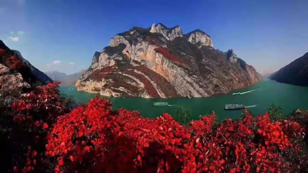 08:00起床吃早饭,坐车前往文峰观景区,在景区内我们可以看到漫山红叶,俯览巫峡,这是何等壮观的景色啊!在红叶中穿行、俯揽长江巫峡、游船如织!