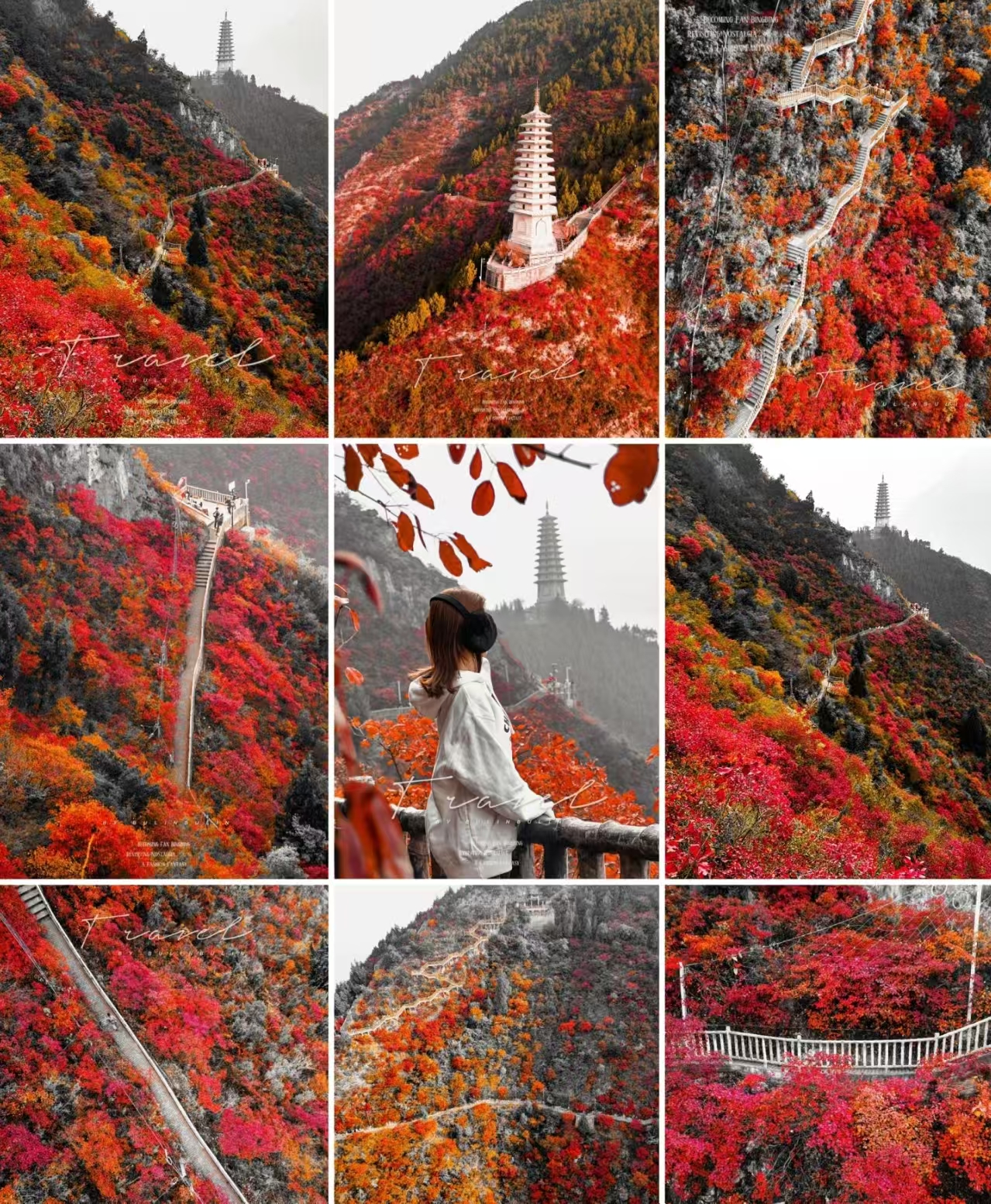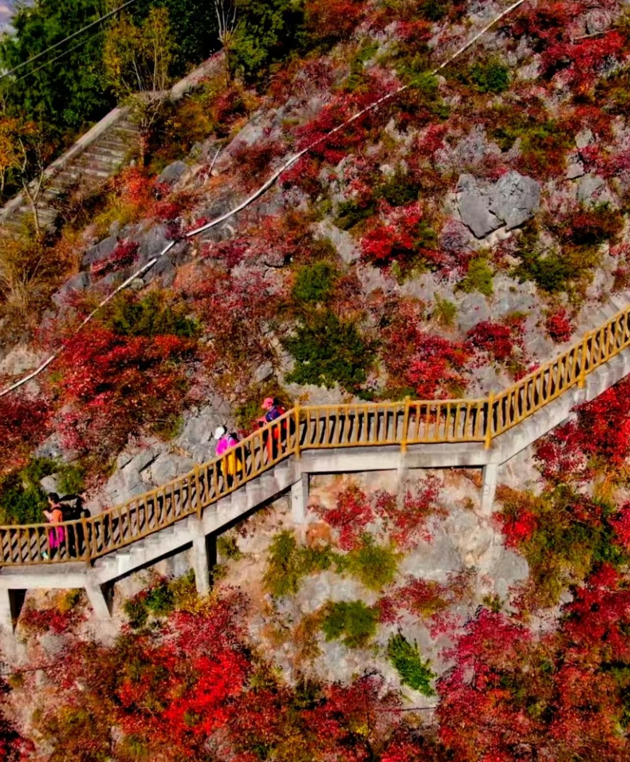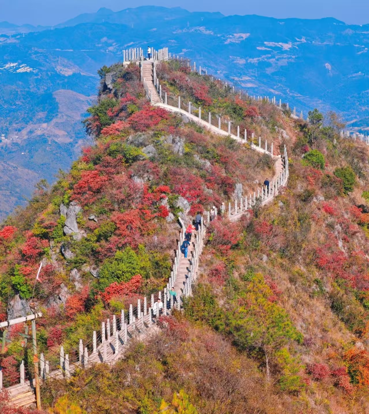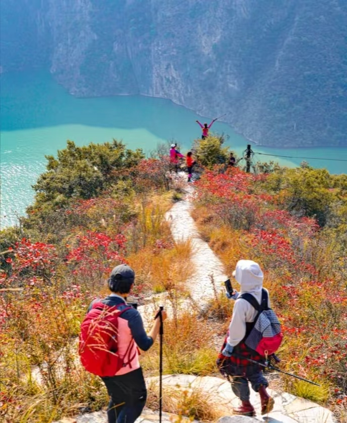 09:00到巫山县徒步起点。登巫峡古道,在700米高的鹰嘴岩俯视长江巫峡盛景,欣赏最美丽的三峡画廊,以及“漫山红叶红胜花”的奇景。穿越飞凤峰,徜徉火凤凰般的飞凤峰红叶林,山顶俯瞰长江,巫山十二峰之集仙、神女、翠屏、圣泉、登龙诸峰尽收眼底;