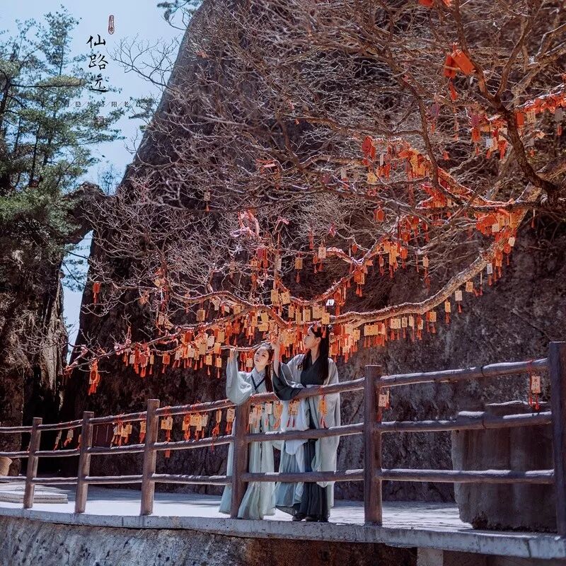 不同于北国,老君山的雪,自带一股仙气飘飘的滤镜。它温柔地覆盖着山峦,为奇峰怪石披上柔软的白色外衣,将整个世界装点成一个静谧而纯粹的童话王国。