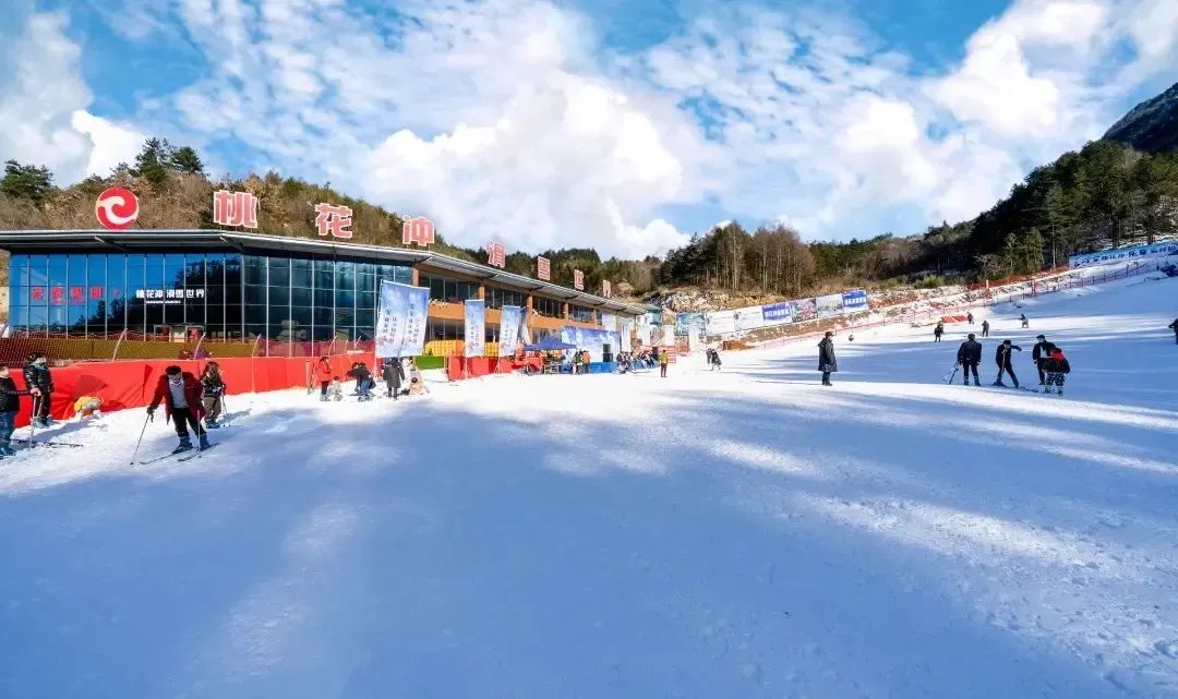 桃花冲滑雪场在原有20000㎡滑雪场的基础上改扩建至150000㎡。建有10000㎡游客服务大厅。