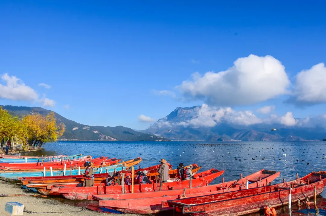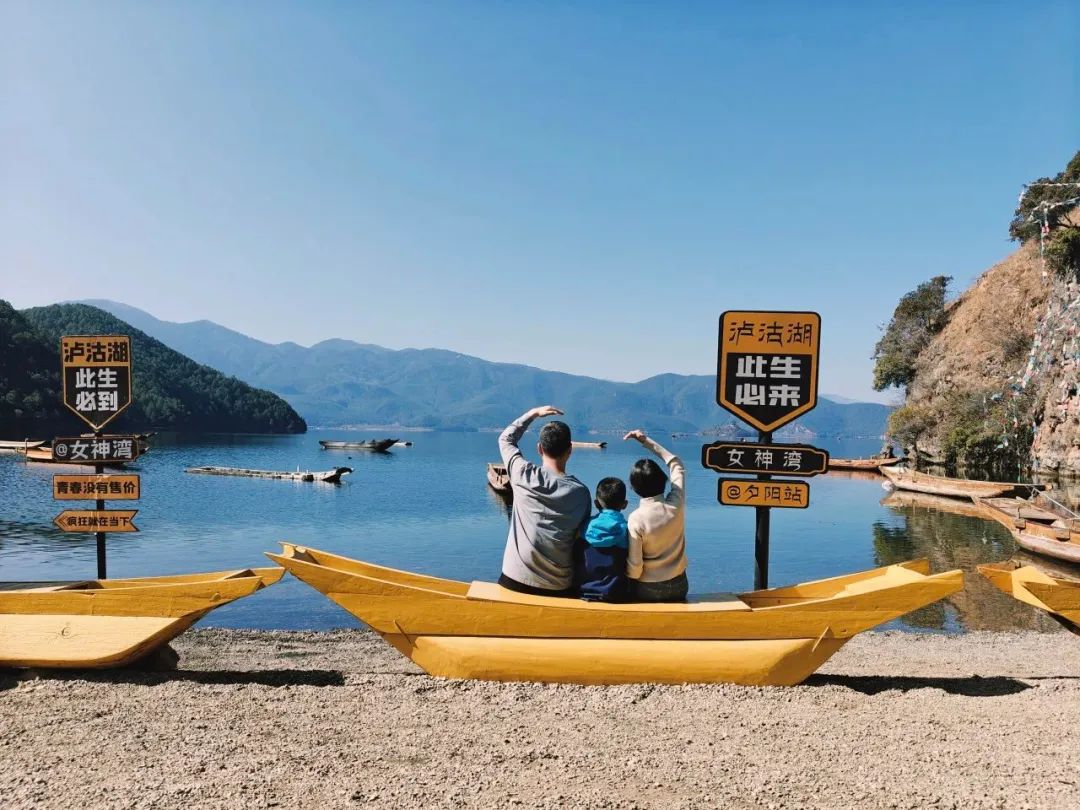 湖光山色的惊艳是视觉的冲击,而山间鸟语,静水生波,以及飘荡在风起涟漪的湖水上的猪槽船,才是泸沽湖的自由底色。