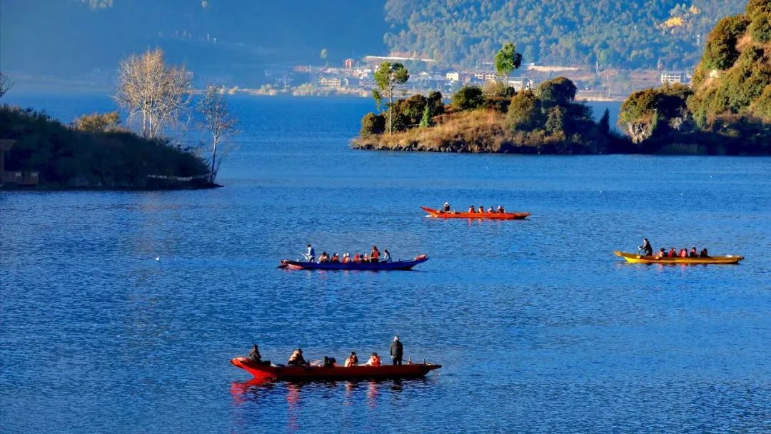 坐上彩色的猪槽船,桨板推开玻璃般的湖面,低头能看清深处水草摇曳的弧度鱼群突然贴着船帮窜过,水鸟扑棱棱从头顶掠过,这一刻的生动,无可比拟。