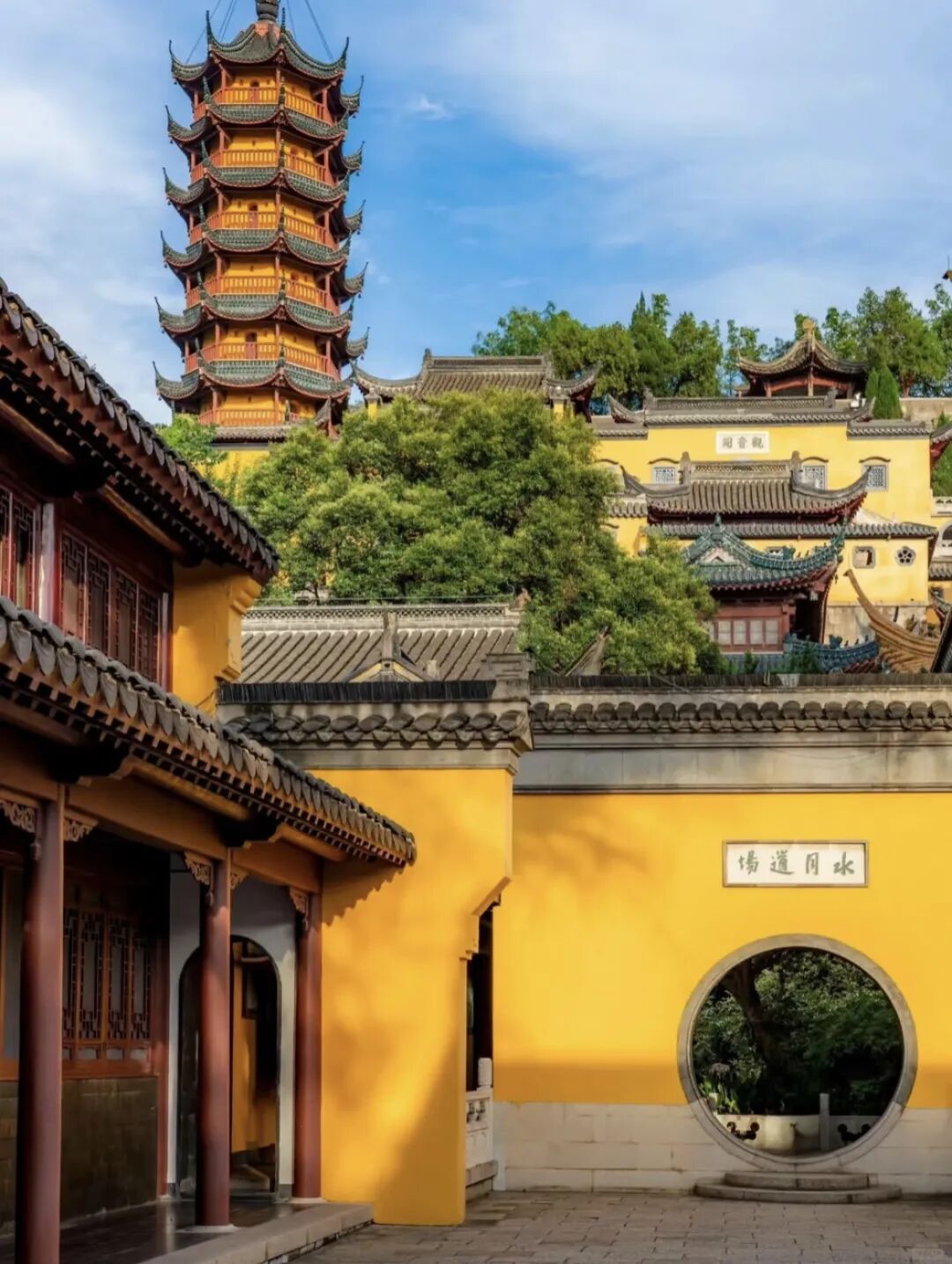 2、【镇江金山寺】水漫金山传说的发生地,寺庙建筑依山就势,与山体融为一体,登顶可俯瞰镇江城和长江。