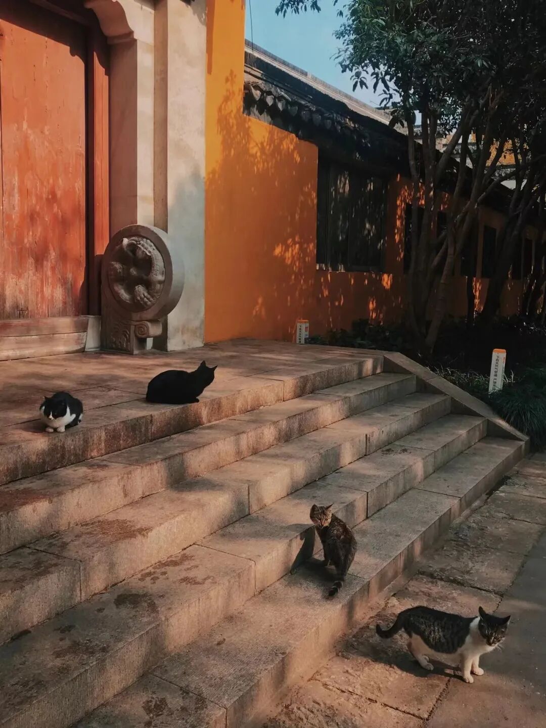 寺庙里人不多,但是却有很多可爱的小野猫。一点都不怕人,慵懒的躺在石板上,一片岁月静好的模样。