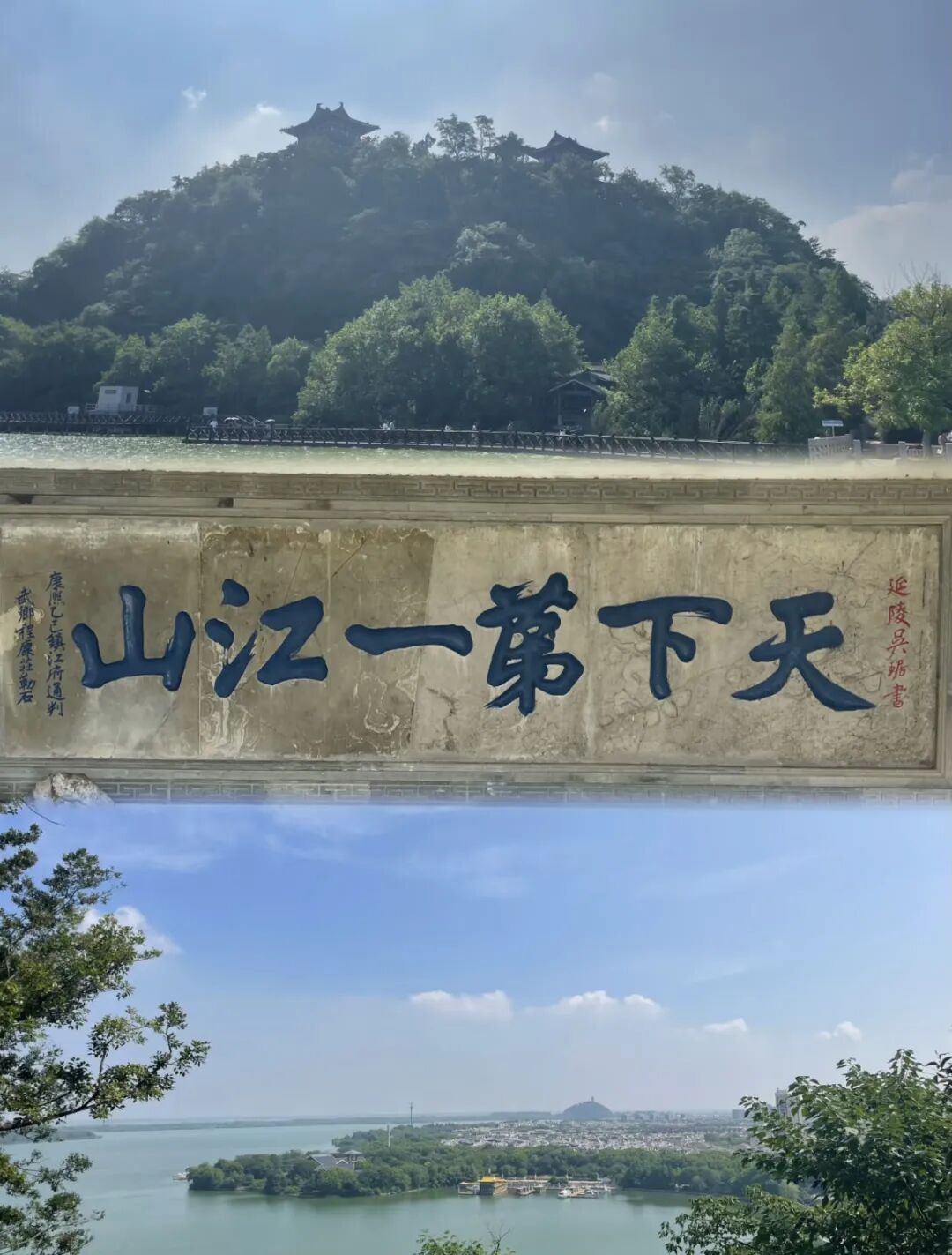 踏入北固山景区,仿若踏入了一部厚重的历史典籍。沿着蜿蜒的山路前行,首先邂逅的便是那赫赫有名的 “天下第一江山” 石刻。