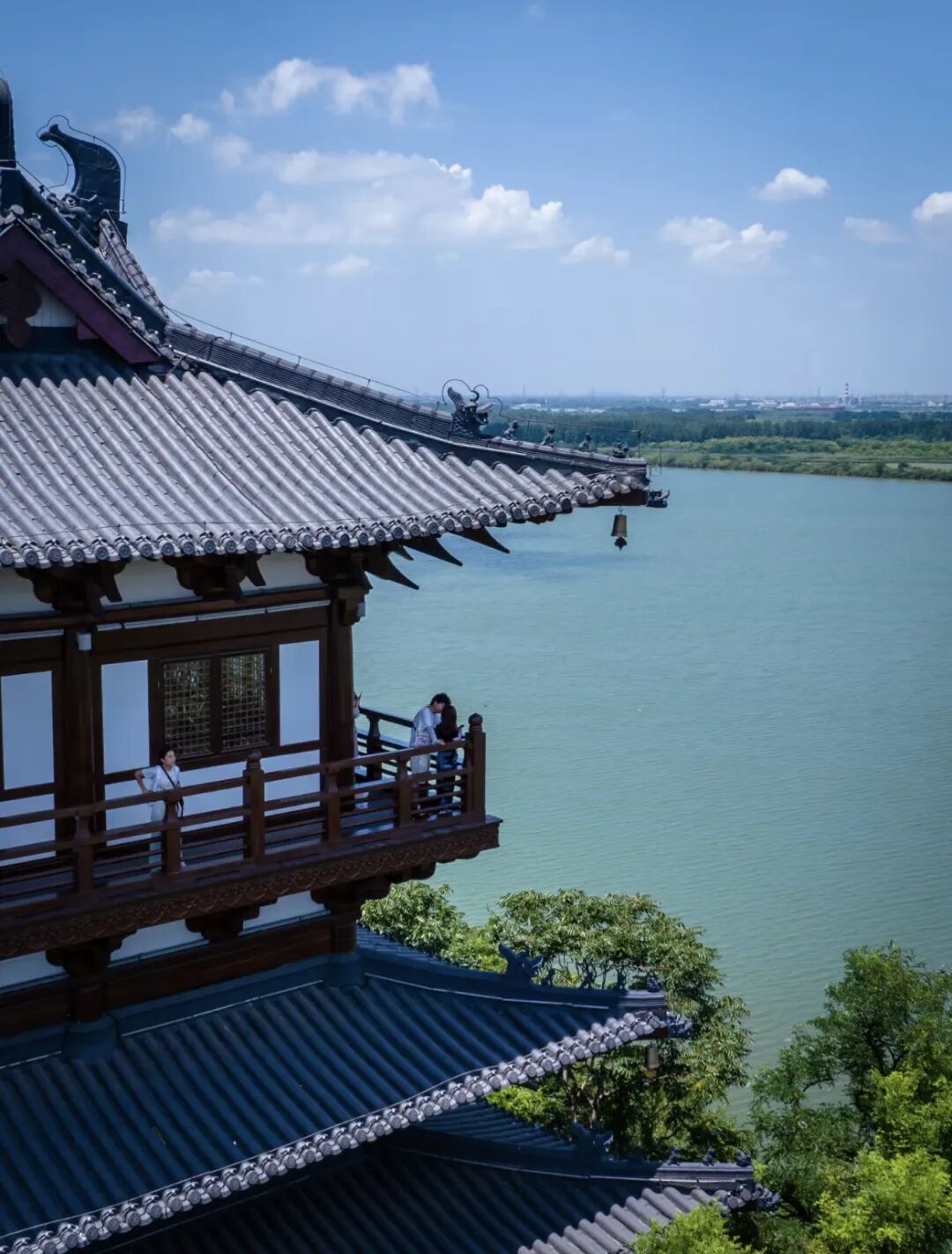 登上北固楼,俯瞰长江,看着滚滚东去的长江,听着楼上随风飘荡的铃声,仿佛穿越了千年的时光,一秒穿越回“何处望神州?满眼风光北固楼”的史诗画面!
