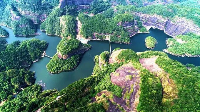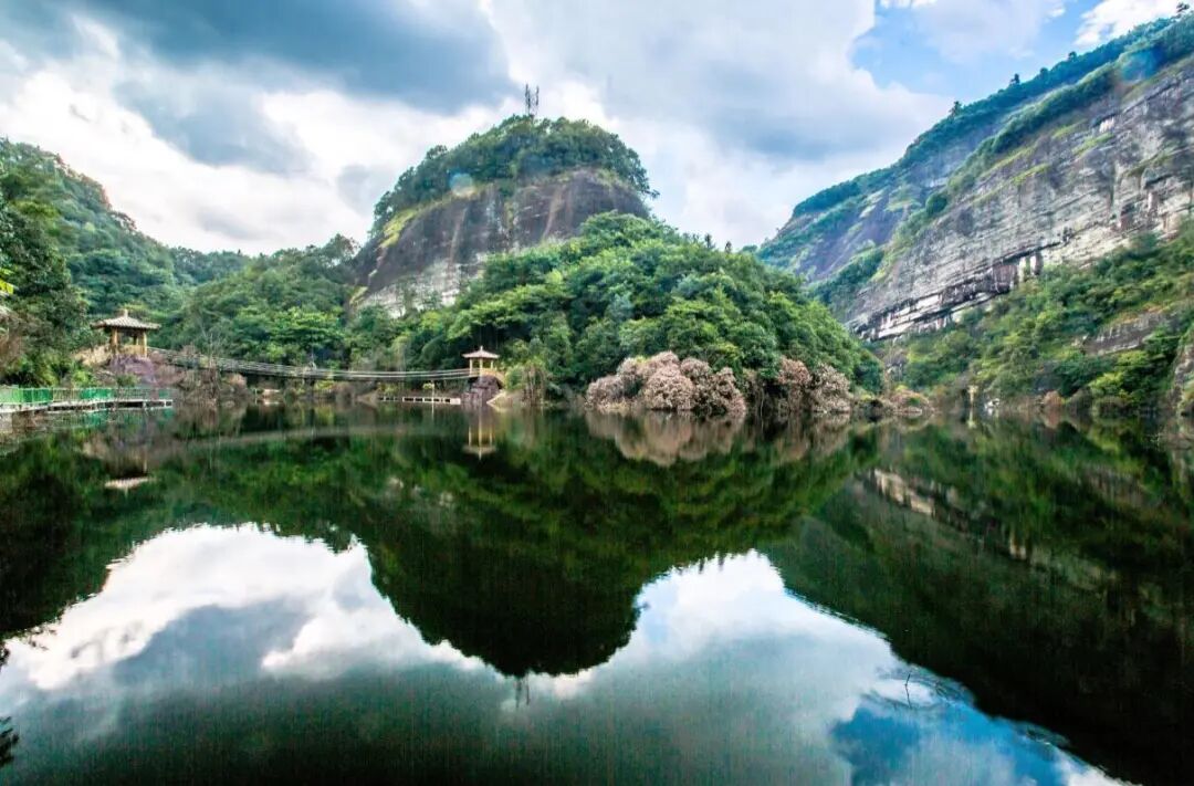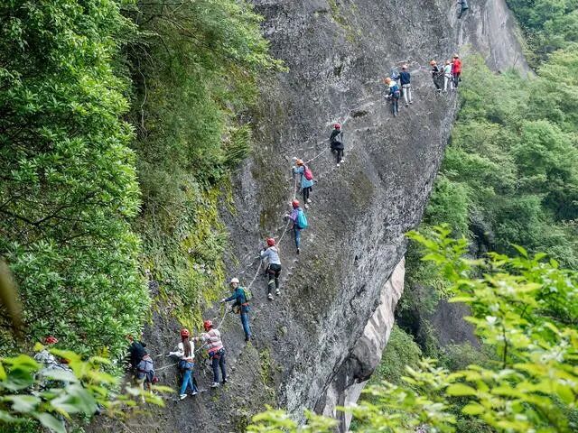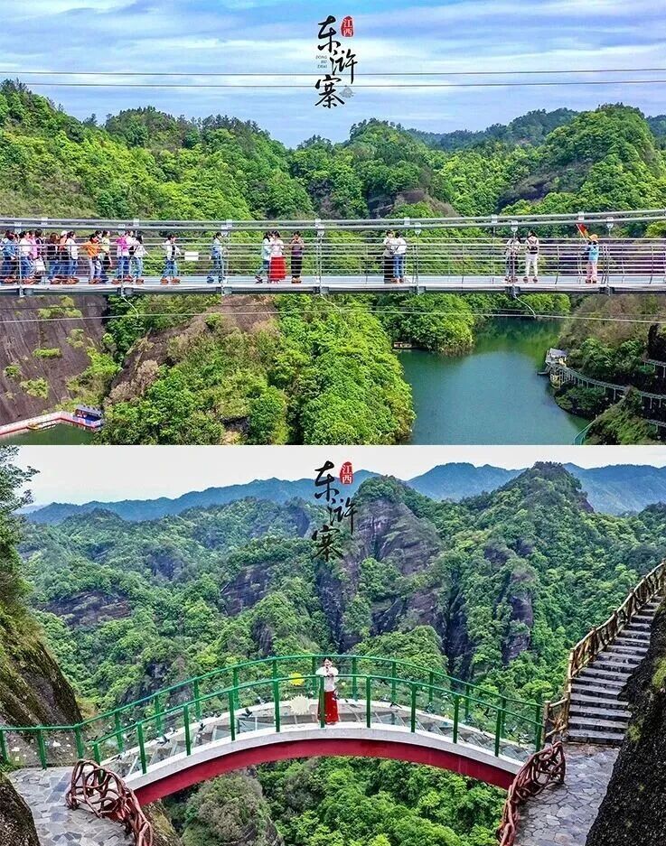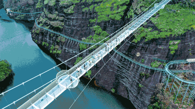 丹霞赤壁、石窟瀑布、玻璃鹊桥、悬崖飞索