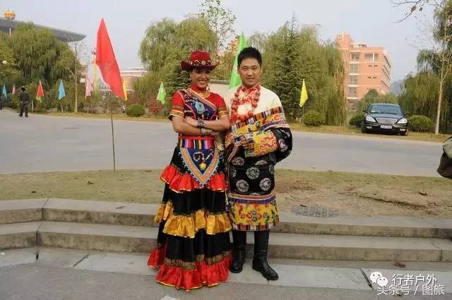 在藏族集镇与农村,男女上身都以藏袍为主,男子下身穿长裤,妇女下身穿长裙。藏袍大多以氆氇(以牦牛织成的布)、毛料或呢料制成,颜色多为黑、褐或深灰,大襟宽腰,领口袖口镶有花边,因袍长过人,穿时将腰部提起系上腰带。