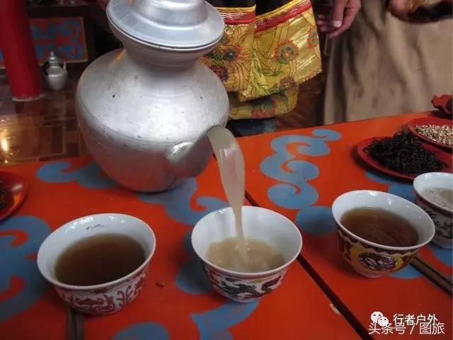 酥油茶是藏族最普通的饮料。制作方法是,先将茶砖熬煮成浓稠的茶汁,然后与酥油、佐料一起倒入酥油茶桶中,搅至水乳交融后煮开饮用。青藏高原气候干燥,缺少蔬菜,而藏民多以肉食为主,所以清热败火的酥油茶是他们日常必不可少的饮料。