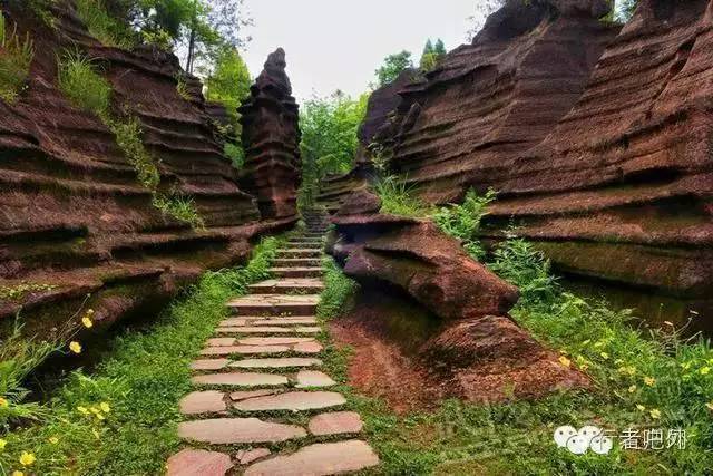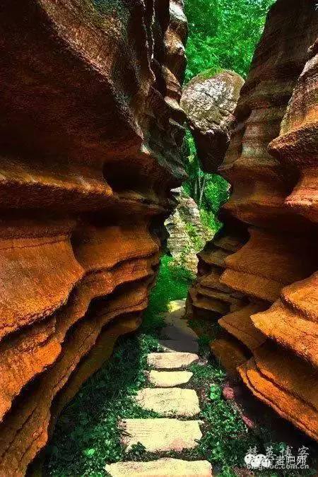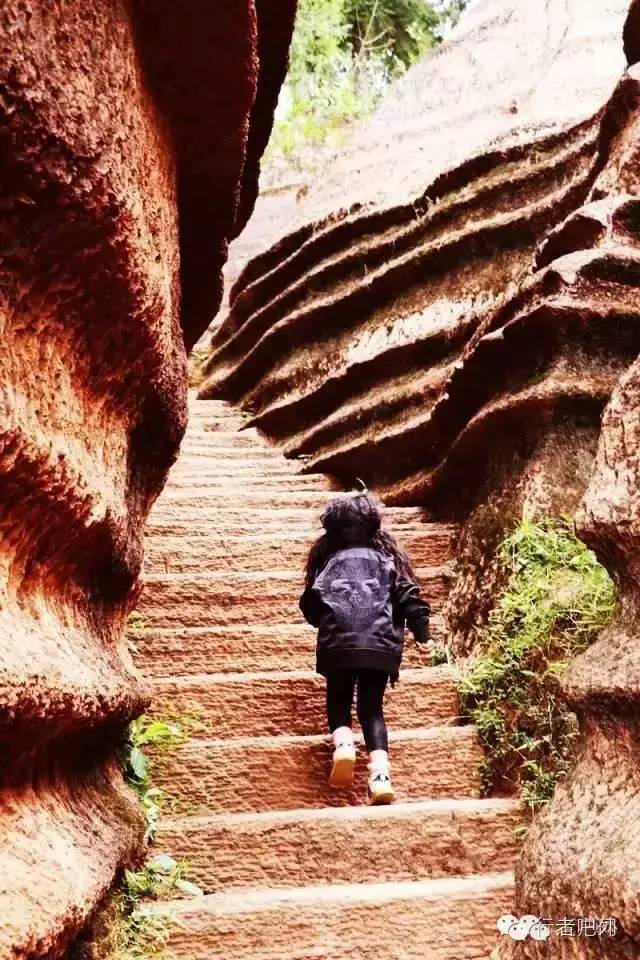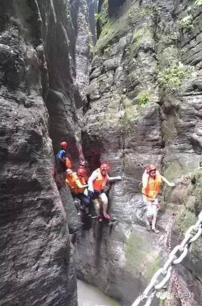 前面提到红石林地域与坐龙溪峡谷一样同属地史上所称的扬子古海。坐龙溪峡谷,是一处惊险刺激的攀爬探秘之地!