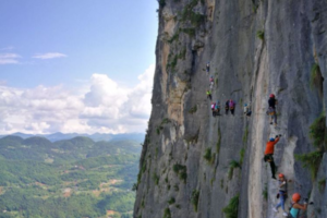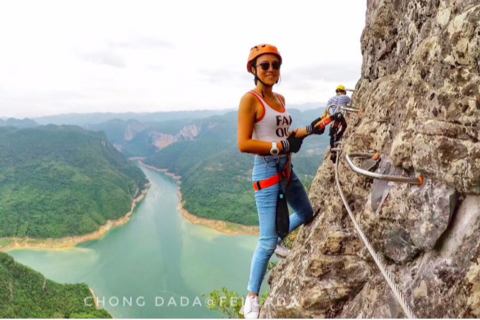 早餐后,我们准时集合出发,前往恩施鸡公岭,我们这次活动的重点项目飞拉达就要开始了。大家听从教练的指导,严格遵守安全操作规则,然后就开始我们的高空挑战吧!大家准备好相机手机,拍下自己高空中优美的姿态。待全部队员都攀爬完毕后,我们就准备返回武汉了。