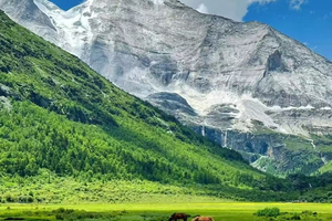 07:30早餐后游玩“东方阿尔卑斯山”之称的四姑娘山,乘坐观光车进入【双桥沟】,观阴阳谷、五色山、日月宝镜、游人参果坪、撵鱼坝、走栈道赏千年的沙棘林、猎人峰、牛棚子,遥观牛心山、阿妣山、野人峰等,在适合地点停留拍摄,可以近距离观赏到对雪山,海子,草地等美景。14:30乘车离开,经巴郎山,卧龙镇及映秀镇,晚上到成都住宿、自由晚餐。