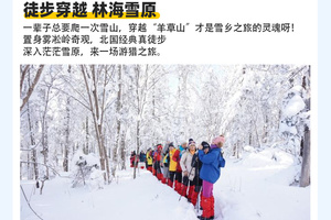 早起,迎着初升的太阳出发去【雪乡】吧!徒步全程需要5-7小时(长度为15公里,徒步起点海拔400米,海拔最高点1235米,虽然基本为缓坡上行和下行,但是对体力有一定要求,同时需要应对严寒的挑战,但是身体健康的队员都能适应和克服,并能顺利享受全程的美丽风景。下坡过程中尤其要注意防滑),这是一场深入林场、雪山中的大冒险,我们将穿越白雪覆盖的森林,登顶【羊草山】,来到雪乡。雪乡的商业开发很严重,但是并不影响这里的美丽。你可以自行参加这里丰富的户外活动(包括滑雪、雪圈、雪地摩托等等),充分感受雪的魅力。