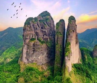 江郎山作为浙江省第一个世界自然遗产,国家5A级景区,是典型的丹霞地貌景观,有着“三石凌空拔地起,壁立千重刺破天”美誉,拥有中国丹