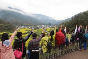 客栈早餐后,领队将带领大家徒步穿越汪搓梯田花海,漫步在花海中,一路行摄,后自费乘坐小面包返回庆源古村,农家午餐,后蹬车返回武汉,