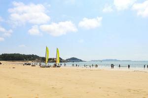坛南湾东临大海,滩面平缓,细沙如银,有"坛南银滩"之称。 坛南湾尽头的潭角尾,岬角突出,景物不凡,象形奇岩遍布海滨沙岗。沙滩漫步、自由发挥、尽情释放!环海公路离开平潭岛;