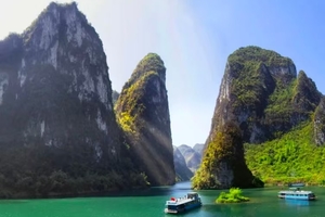 壮族里被誉为创世女神,南国第一峡,是我国典型的石灰岩喀斯特峡谷。 秀丽的姆洛甲女神峰,如同仰睡的少女,笑视白云,飘逸秀发瀑布般地垂落在水面上!乘船而上,两岸山峰如斧劈刀削,隐隐露出一线青天,体会“山重水复疑无路,碧峰一转见新天”江面一尘不染,水天一色,天泉飞瀑。漫步绝无伦比的460米悬崖栈桥,欣赏高峡出平湖奇观。