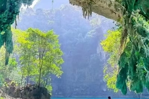 早上7点30发车,穿行省道,途径鸳鸯洞,凤山县城,约2小时多到达世界之窗【三门海】景区游玩,这里的水比九寨更清灵,比大海更湛蓝神秘。三门海天窗群集山、水、洞、天为一体,蔚为壮观,神秘的地下河资源,奇妙壮丽的卡斯特湖,卡斯特泉,大型溶洞群,天坑群,天窗群。天生桥等卡斯特地貌的所有特征都集中体现于三门海景区内,构成了名副其实的卡斯特世界地质公园。我们将乘船游穿越天坑溶洞体验世外桃源的探索之旅。
