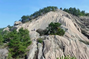 桃花寨多松树,沿着山体,郁郁葱葱有一大片松林。忘记一切烦恼,走进松林。吹着悠悠山风,穿越葱郁松林,感受不一样的风光。尽情呼吸新鲜空气如此便利,满眼都是青山,满心都是欢喜。一路浩浩荡荡,小伙伴们有说有笑,互相帮助,携手前进。