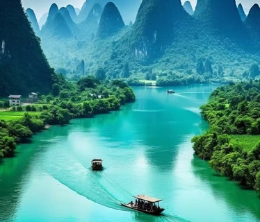 漓江水墨泼洒出阳朔的魂,群峰如簪,倒影成诗。竹筏轻摇遇龙河,涟漪荡开喀斯特的千年褶皱,山岚与晨雾缠绵,恍若行舟画中。
