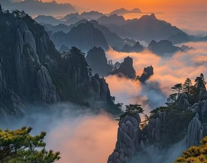泰山看日出,黄山看日落,而夏日是观赏黄山日落的最好时期,日落时分,云与霞交相辉映,漫天的霞光,在奇峰巧石见绚烂盛放。