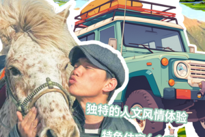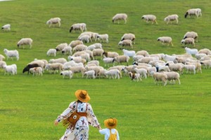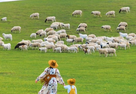 穿蒙古族特色服装拍照,乘坐草地小火车游览草原