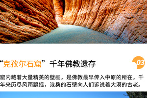 1. 克孜尔石窟的参观由研究院的老师带领,为保护洞窟里的壁画,背包和水不能带入。洞窟内严禁拍照和录像,参观者务必紧跟讲解老师的脚步,请保护文物。