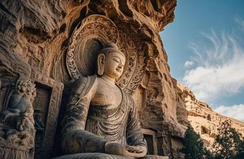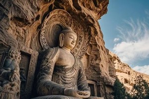 早期的"昙曜五窟"气势磅礴,具有浑厚、纯朴的西域情调。