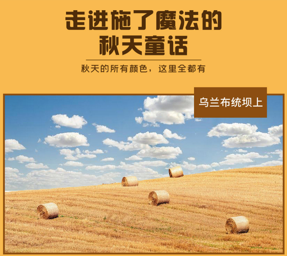 早餐后,乘车前往【塞罕坝】,指定地点换乘越野车出发,开始深入草原秘境探索,一路穿越锡林郭勒草原,影视外景拍摄基地感受草原美丽风景。秋天的坝上草原不可错过的,千里披金、层林尽染、秋色绚烂!值得一提的是,这里鲜有人来,可以静静享受草原的安谧和美妙;