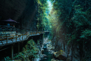 自然景区则主要由一线天、熊猫洞、大小龙门、独家寨、洞群、暗河、地缝、独峰、象鼻山、清江河画廊等组成,可以说是一条全面覆盖湖北各种山地地貌的线路,是一个微缩的喀斯特地貌,既有丛林、草坡、峡谷、又有碎石坡、巨石阵,原始洞穴、攀爬路段,堪称利川最美的户外徒步线路。