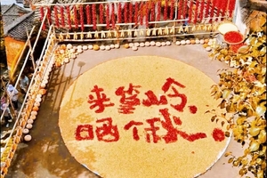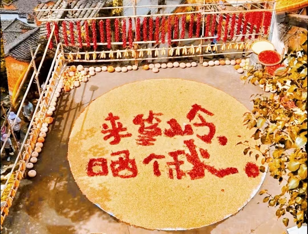 早餐后前往篁岭打卡晒秋,赏秋景区TOP10”中的第2位,成为这个秋天值得奔赴的目的地之一。数百栋徽派古宅在山崖上错落排布,火红的辣椒、金黄的玉米、橙黄的南瓜整齐的摆放在临崖的窗台,从高处向下俯瞰宛如一幅绚丽的丰收图。这独特的美景也构成了中国最诗意的秋天符号。