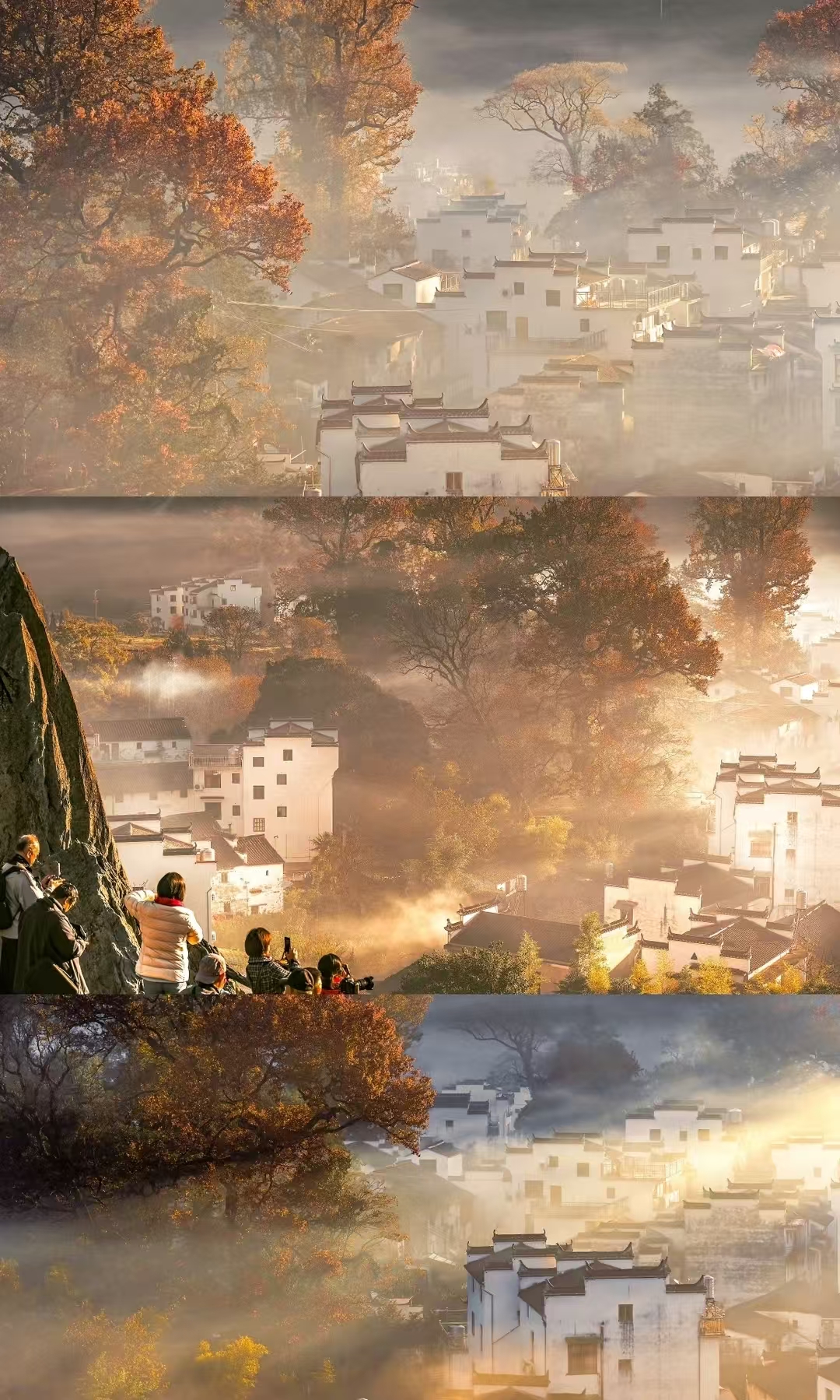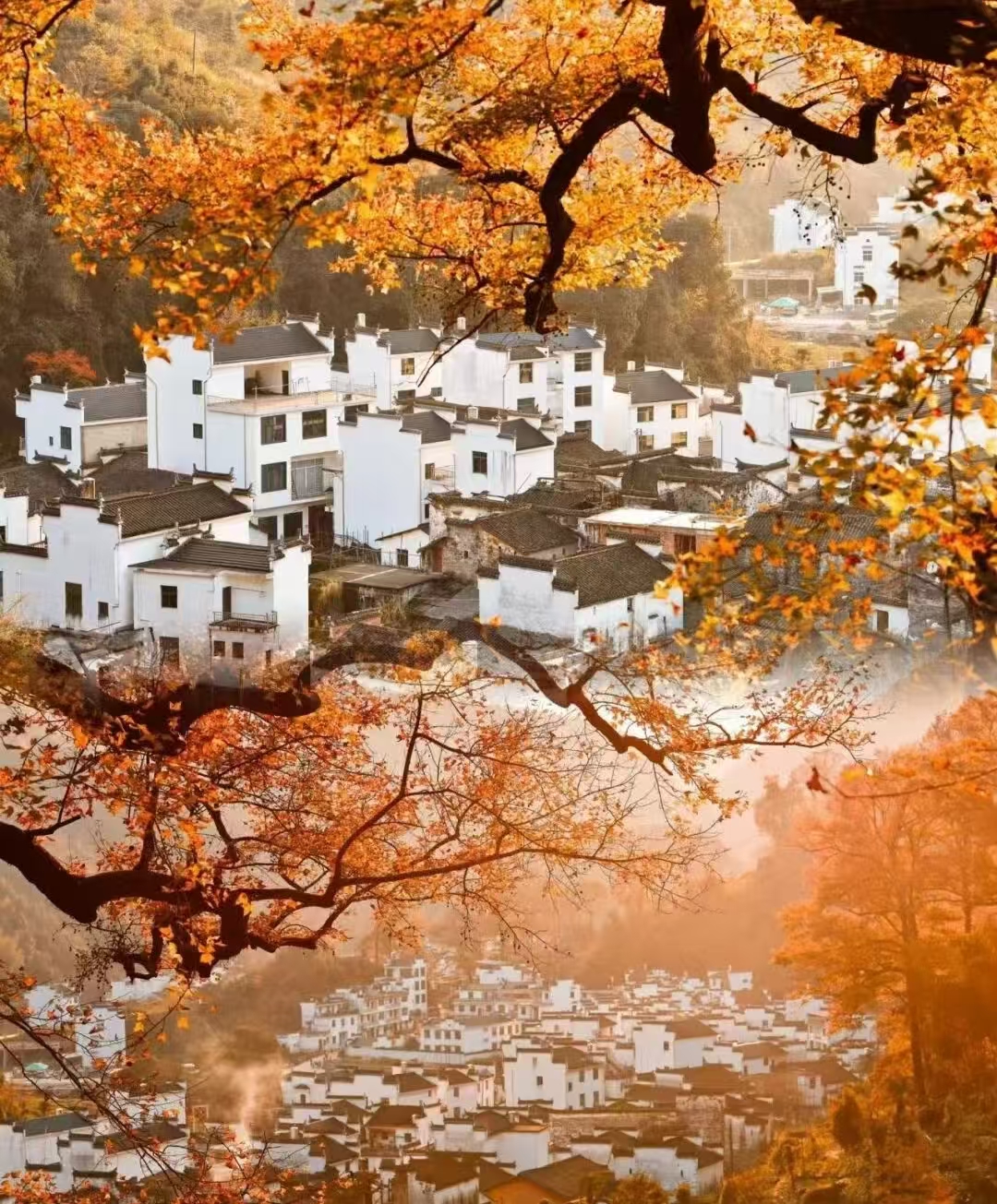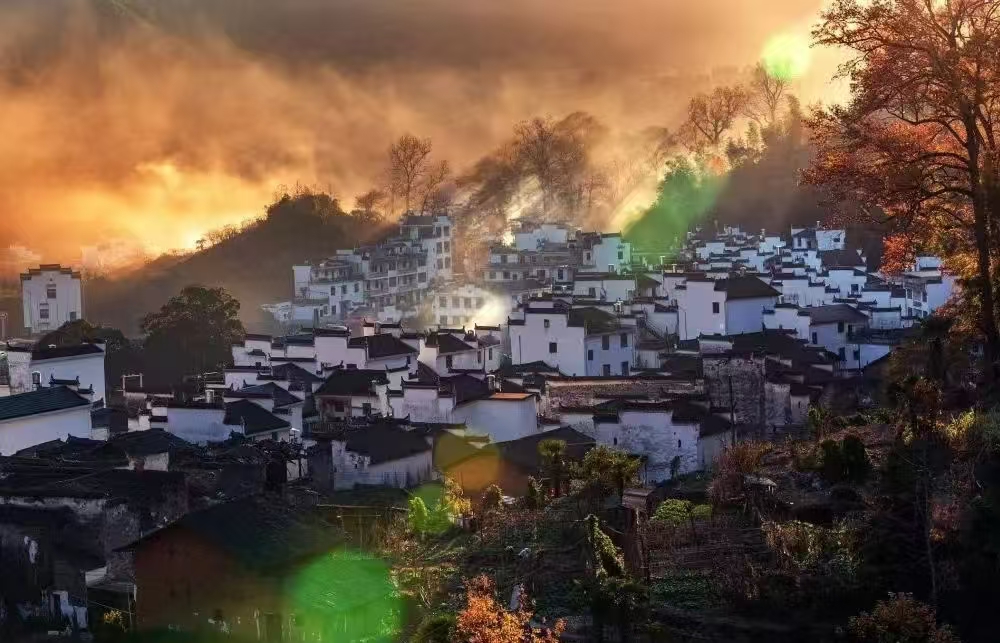 每当石城门口那棵古枫树变成了红色,古枫成林,村舍聚集。清晨雾气或炊烟中的火红枫树美得惊人。石城晨雾和光影美轮美奂,变化多端,不知迷倒了多少人……很多人曾经一眼便喜欢上的婺源仙境照,那便是来自石城村!
