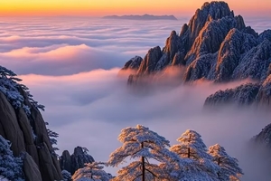 黄山山势陡峭,雪花随风飘舞,在峰峦、奇松、怪石上堆积,重塑了整个山的形态,因而被誉为继奇松、怪石、云海、温泉之后的 “第五绝”。