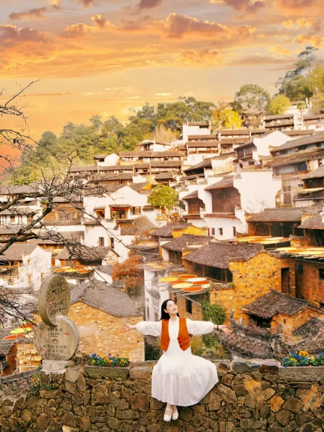 风一吹,就把秋的味道送到了篁岭。这里既有晒秋的艳、柿子的甜、枫杏的柔,让眼睛浸在满是诗意的秋景里;更藏着一汪熨帖的温汤,等你把古村逛遍、把秋色看够,就来这里卸下满身倦意,把暖意揉进骨子里。