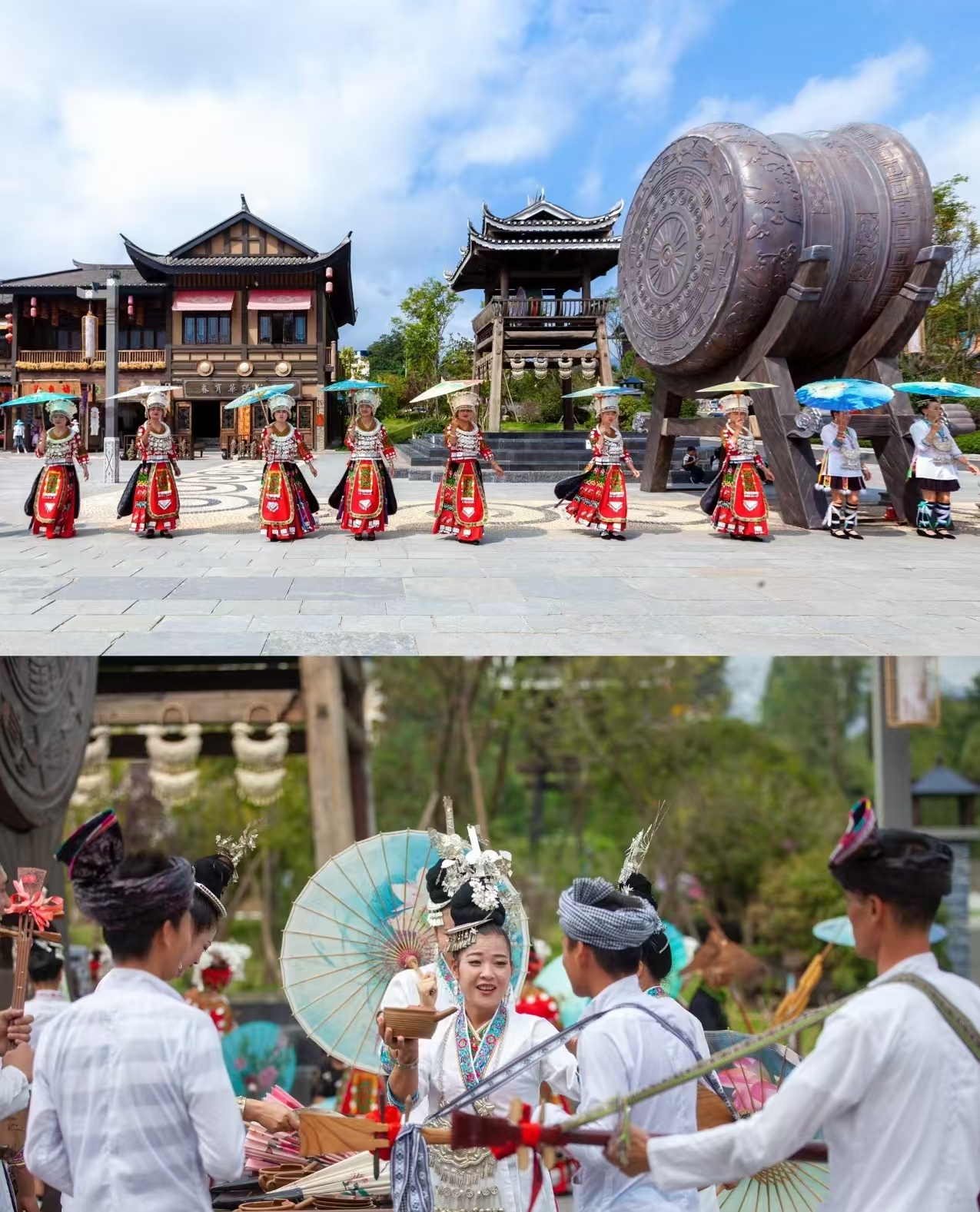 早餐结束后前往丹寨,中午在服务去吃饭,下午到达丹寨游玩丹寨万达小镇一个融合非遗和现代娱乐的旅游小镇,不用翻山越岭就可以了解体验苗侗文化让传统技艺更贴近生活 走向大众