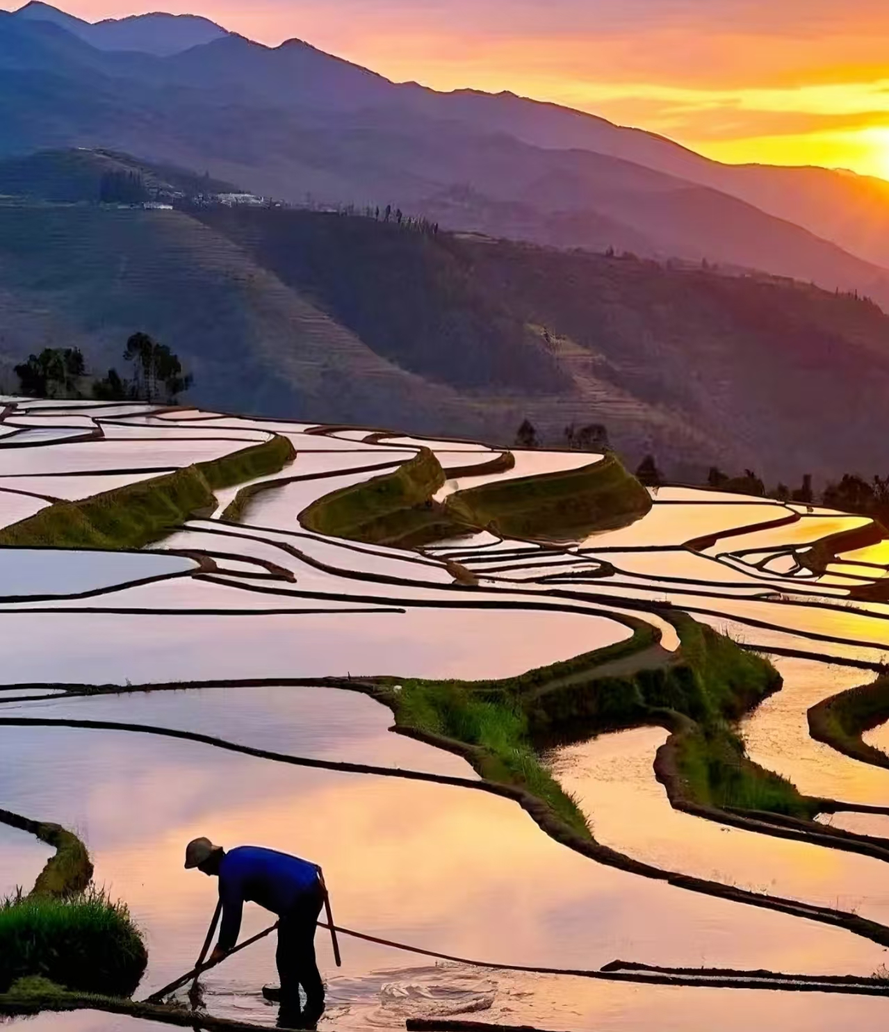 被联合国选中的梯田日落——元阳梯田