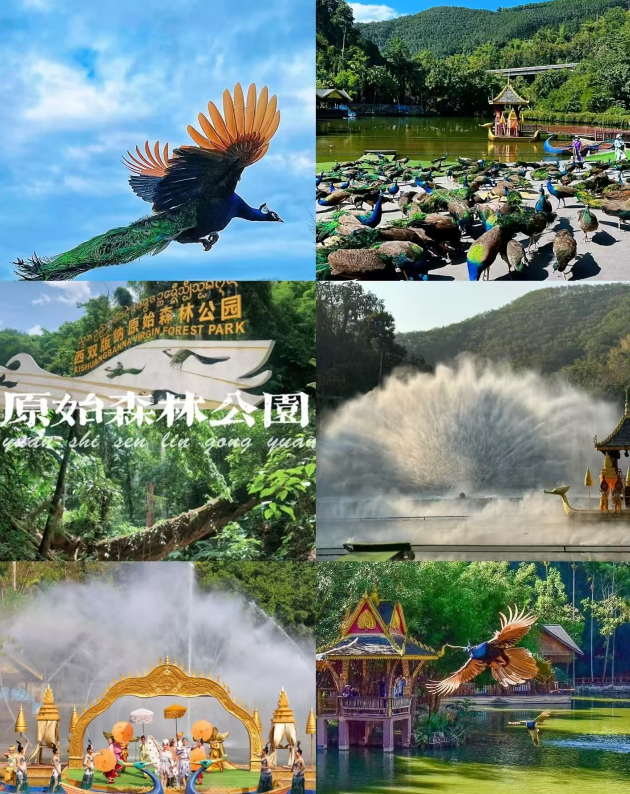 午餐后前往西双版纳原始森林公园,位于景洪以东、澜沧江以北,距州府所在地8公里处,是全州离景洪城最近的一片原始森林。在25000亩热带沟谷雨林的基础上创建,园内森林覆盖率超过98%,品种繁多的热带植物遮天蔽日,龙树板根、独木成林、老茎生花、植物绞杀等植物奇观异景随处可见,是个天然的大氧吧。园内有沟谷雨林、峡谷幽深、乌鸣山涧、林木葱茂、湖水清澈,让人真切感受到大自然的神秘;孔雀飞舞、民俗歌舞、美食、泼水狂欢等项目,也是西双版纳最大的综合性生态旅游景点之一