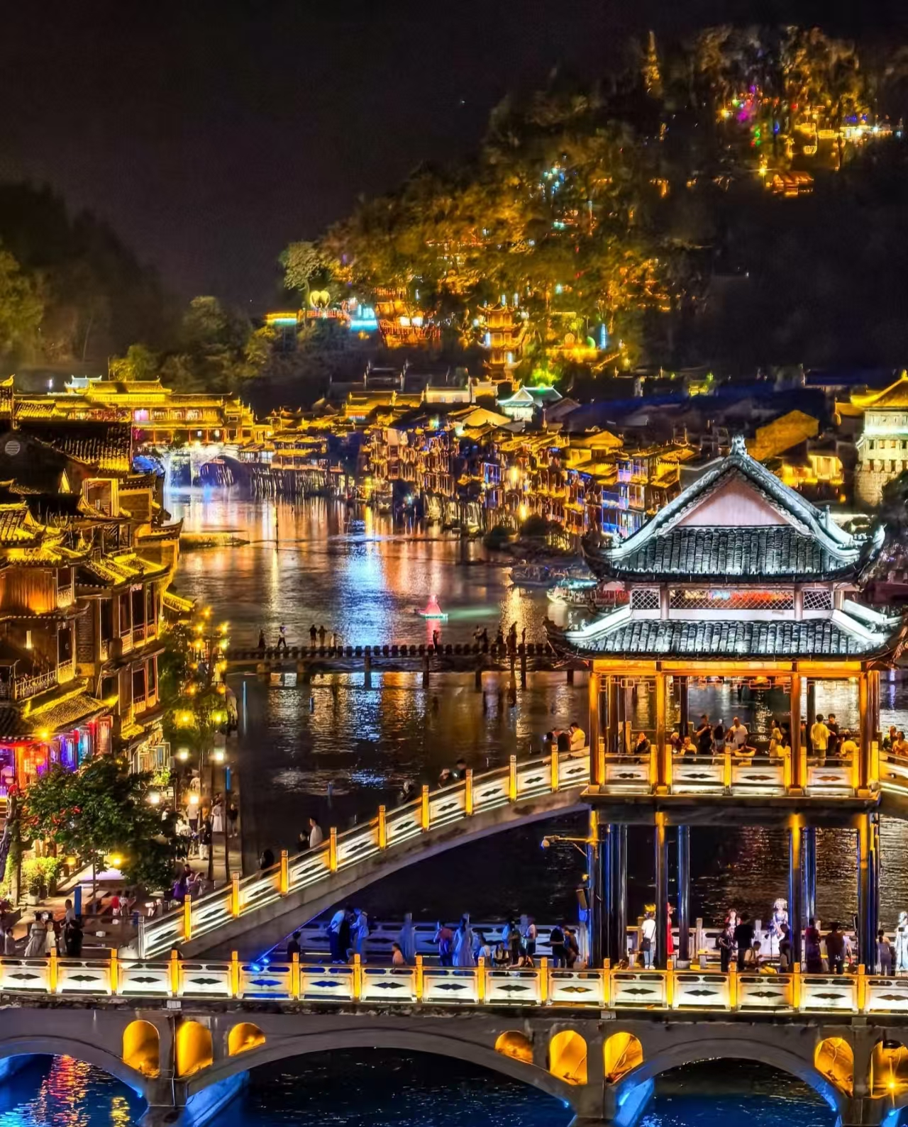 晚上可以在凤凰古城游玩,打卡古镇