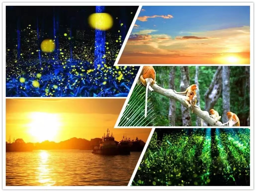 上午亚庇城市观光,沙巴大学,粉红清真寺🕌 ,加雅街,基金大厦🖼️,下午游玩卡瓦红树林,邂逅长鼻猴🐵 ,探秘萤火虫🐞 ,马来下午茶🍵 海鲜晚餐🦀 🦐