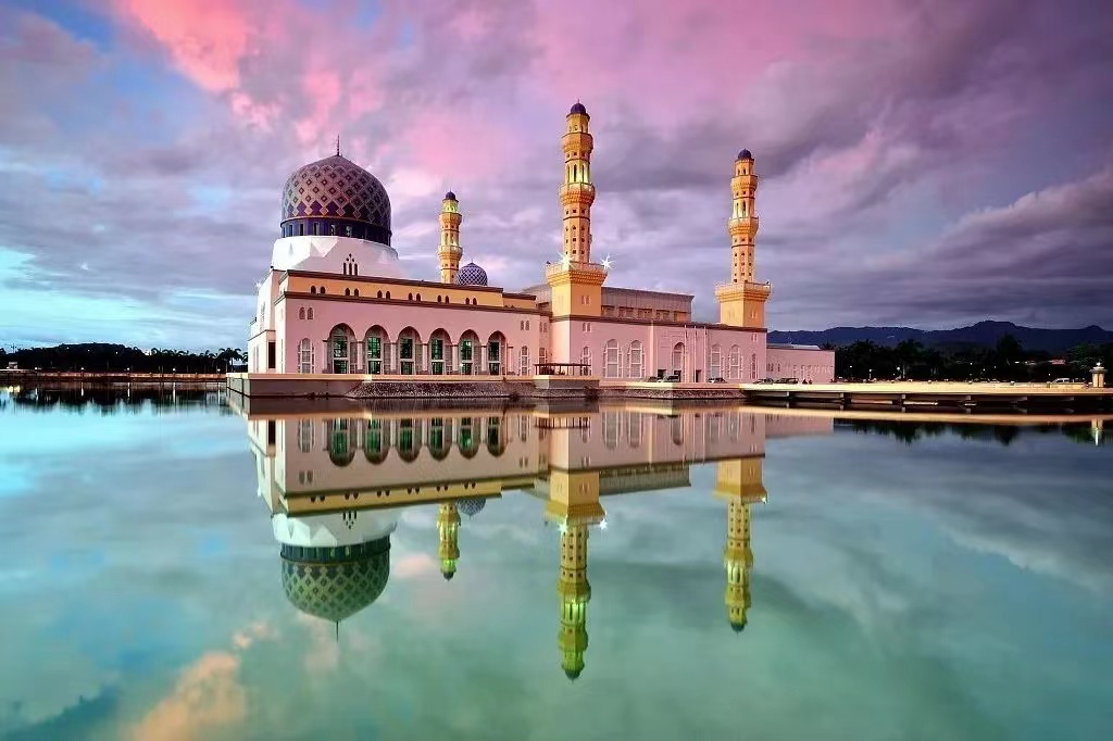 水上清真寺是一座典型的当代伊斯兰教建筑,也是马来西亚夕阳景观最壮丽的回教堂之一。这里可以容纳最多12000名教徒祈祷,清真寺的四座宣礼塔和美丽的穹顶非常引人注目。由于是建在人造湖上,白色建筑倒映在湖水中,与蔚蓝天色相衬,让人为之震撼。