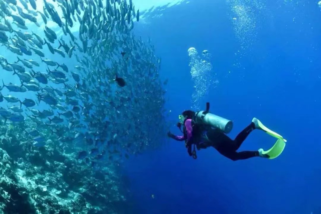 *体验潜是由专业潜水教练以最多一对二的人数带领你体验探索最深12米的五彩缤纷的海底世界。
