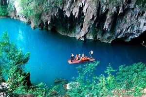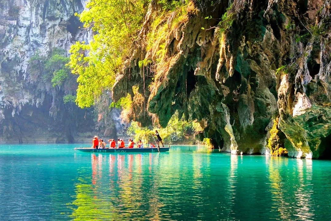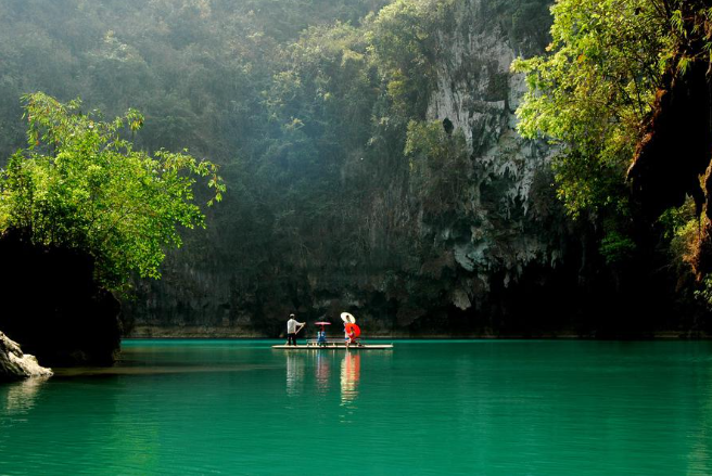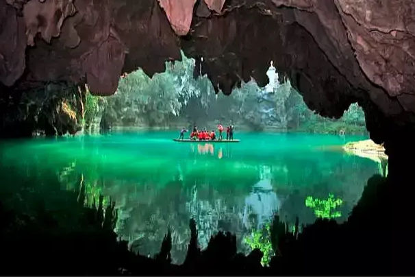 我们将乘船游穿越天坑溶洞体验世外桃源的探索之旅。