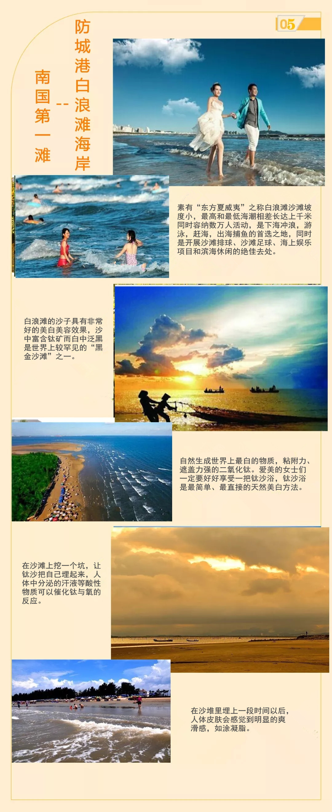 中越跨海,椰风海韵,南国第一滩白浪滩海岸,冲浪赶海,享受具美白效果的黑金钛沙浴,品中越特色海鲜餐。