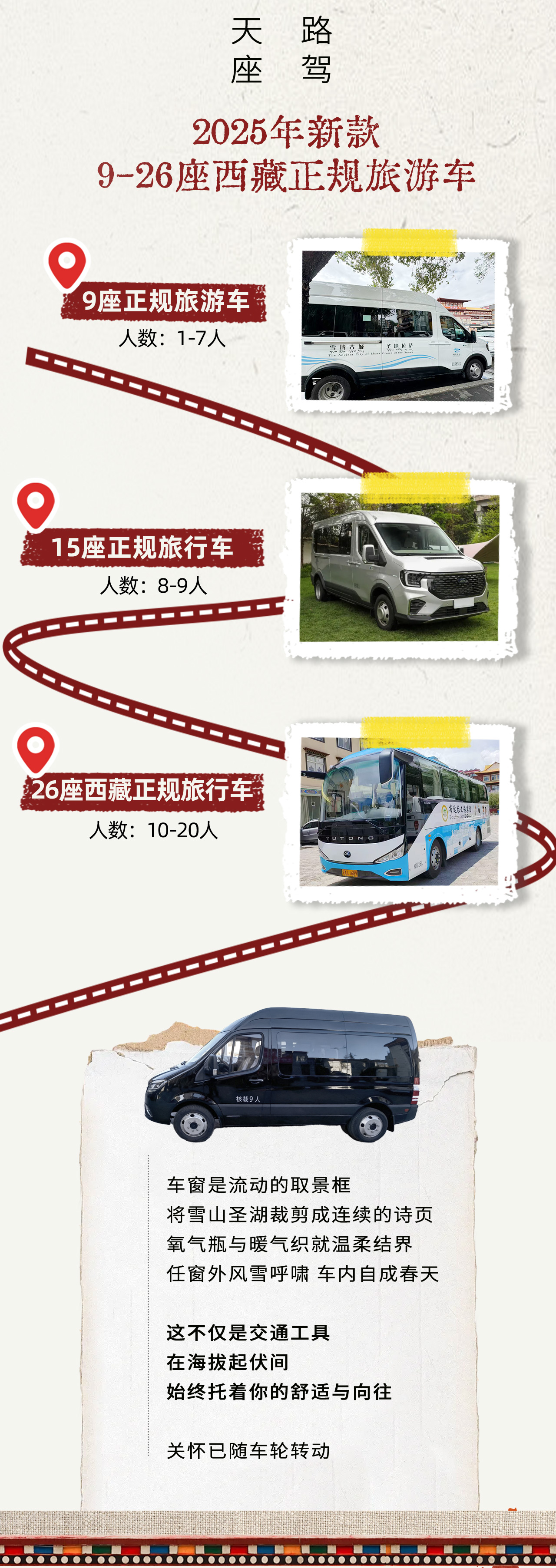 全程正规9座-26旅游牌照用车的包车费用,同时包含每个座位的保险,全程油费,珠峰进山费,司机食宿补贴等。