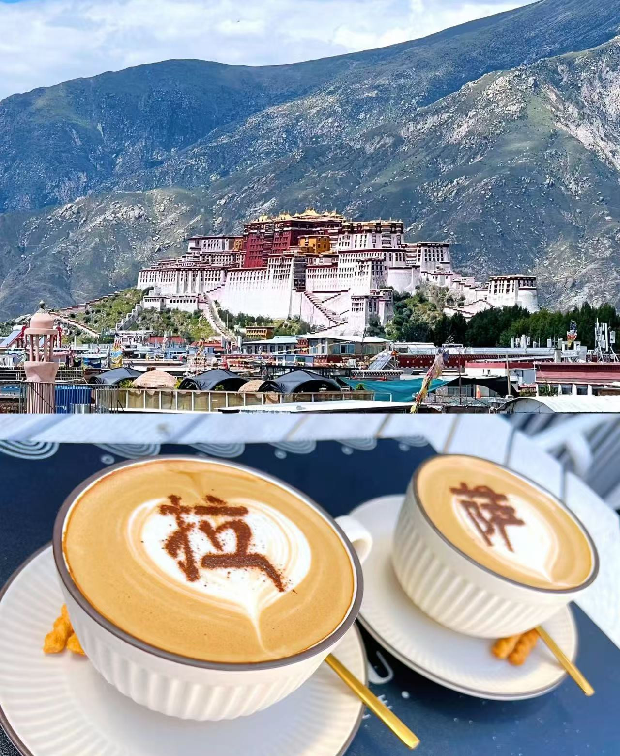 下午比较悠闲,前往布达拉宫观景咖啡馆体验当地下午茶(咖啡+甜品)拥有绝佳的观景位置,可以远眺布达拉宫,店内环境优雅,氛围舒适,是拍照打卡的绝佳地点。不过,天台的景观位有限,一定要文明排队拍照哦。