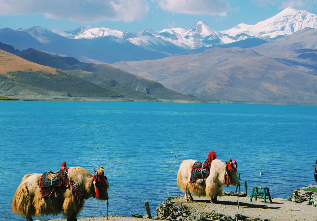 从拉萨出发,随着车缓缓爬升,雪山渐渐拉近,白云游移,仿佛开车在云端一般。我们先翻过岗巴拉山,来到的是羊卓雍措,被誉为世界上最美丽的水。不同时刻阳光的照射,羊湖会显现出不同层次、极其丰富的蓝色,羊卓雍措的水源来自四周念青唐古拉山脉的雪水,没有出水口,雪水的流入与自然的蒸发达到一种奇特的动态平衡,湖水随着光线变幻,演化成千变万化的蓝色。