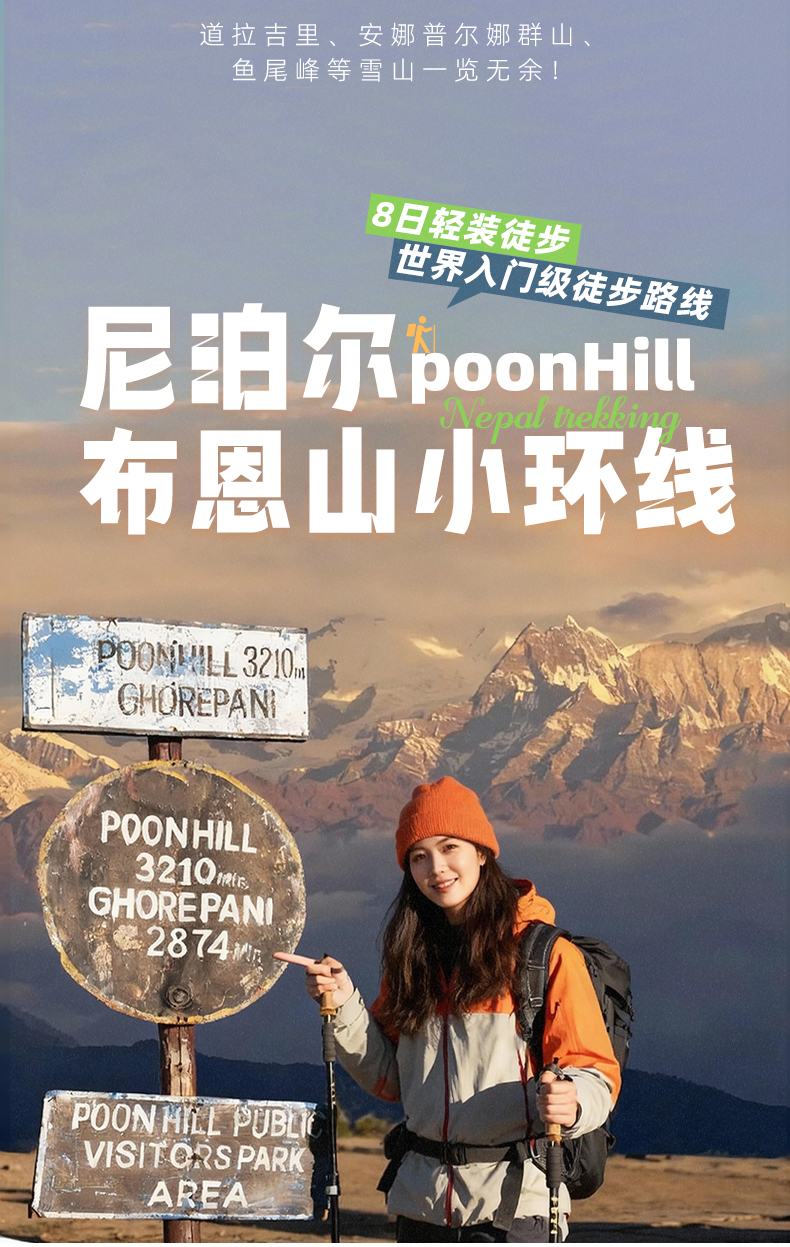 【行程概述】早餐过后我们会乘坐越野车去徒步起点乌勒里Ulleri1960m,乘坐越野车大概需要4.5小时,然后会在乌勒里感受一下山间的魅力。从乌勒里Ulleri1960m开始,徒步时间约为6小时左右,徒步距离8公里,爬升1000米。这段路程基本以上坡路和台阶为主(建议使用登山杖),沿途可见田野、村庄和雪山(安娜普尔娜南峰-7200m,道拉吉里峰-8167m等,鱼尾峰-6993m,其中鱼尾峰尼泊尔人心目中的神山,至今仍是处女峰。)晚上入住观景客栈,运气好可以拍到美丽的银河星轨。Ghorepani在尼泊尔语中Ghore是马的意思,pani是水的意思,所以Ghorepani是马喝水的地方,在过去是尼泊尔与西藏往来盐贸易的地方。